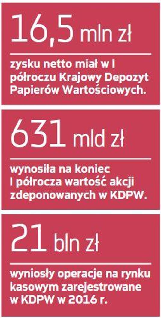 Wydaje się jednak, że tym razem powrót Kluzy na rynek okaże się skuteczny. Z samym zainteresowanym w poniedziałek nie udało nam się skontaktować. Według informacji „Parkietu" za jego kandydaturą opowiada się Adam Glapiński, prezes Narodowego Banku Polskiego, oraz Wojciech Nagel, szef Rady Giełdy. Popierane przez nich zmiany kadrowe wydają się o tyle prawdopodobne, że zarówno NBP, jak i GPW mają po 1/3 udziałów w KDPW (taki sam udział w spółce ma również Skarb Państwa reprezentowany przez ministra finansów i rozwoju), a sam Nagel dodatkowo zasiada w radzie nadzorczej KDPW, która odpowiada za wybór kandydata na szefa tej instytucji. Sam Nagel w poniedziałek był dla nas nieuchwytny. Również szef rady nadzorczej KDPW Paweł Górecki do zamknięcia tego wydania „Parkietu" nie odpowiedział na nasze pytania.