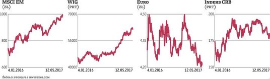 Bezpośrednią przyczyną poniedziałkowego rekordu we Frankfurcie były wyniki wyborów w Nadrenii Północnej-Westfalii. – CDU wygrała w najbardziej zaludnionym landzie, gdzie głosy oddaje ponad 20 proc. niemieckich wyborców. Dotąd władzę sprawowała tu SPD. Dlatego sam fakt, iż partia dostała tu ponad 3 pkt proc. mniej niż partia Angeli Merkel, jest mniej istotny niż przejęcie władzy przez politycznego rywala. To lokalne rozdanie może nadać bieg kampanii wyborczej i przełożyć się na sukces CDU jesienią – komentuje Przemysław Kwiecień, główny ekonomista X-Trade Brokers. Taka perspektywa jest kolejnym po triumfie Emmanuela Macrona we Francji i przegranej Geerta Wildersa w Holandii czynnikiem zmniejszającym ryzyko rozpadu Unii Europejskiej. To uspokaja inwestorów i zachęca do kupowania akcji. Widać to chociażby po zachowaniu indeksu MSCI Emerging Markets, który od początku roku wzrósł o 16,5 proc. i w piątek po raz pierwszy od dwóch lat znalazł się powyżej 1000 pkt.