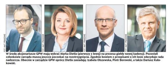 Wszystko wskazuje na to, że środowe walne zgromadzenie GPW, którego najważniejszym punktem jest wybór prezesa giełdy na nową kadencję, będzie już tylko formalnością. Skarb Państwa zgłosił bowiem kandydaturę obecnego szefa GPW Marka Dietla. Wyzwań rynkowych na kolejne cztery lata (tyle trwa kadencja) nie brakuje. Nie wiadomo jednak, kto będzie wspierał Dietla w pracach zarządu.