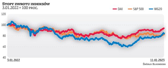 – Rynki rozwijające się, w tym Polska, są obecnie atrakcyjniejsze pod względem wycen niż rynki rozwinięte, zwłaszcza USA. Dodatkowo warszawska giełda mocniej niż inne rynki cierpiała przez większą część 2022 r. ze względu na bliskość działań zbrojnych toczących się w Ukrainie – komentuje Tomasz Matras, dyrektor biura rynku akcji TFI PZU. Podobnego zdania jest Jarosław Niedzielewski, dyrektor inwestycji w Investors TFI. – Do połowy października 2022 r. WIG20 był najgorszym indeksem na świecie. Obecne odbicie jest powrotem do pewnej normalności – ocenia ekspert Investors TFI. Przypomina, że WIG ubiegły rok zakończył około 17 proc. pod kreską, czyli podobnie jak indeksy rynków wschodzących czy S&P 500. – Dochodzimy do miejsca, w którym powinniśmy się znajdować, patrząc na to, co dzieje się w Niemczech, we Francji. Te kraje również dotykają konsekwencje wojny w Ukrainie, choć może w nieco mniejszym stopniu niż Polskę – zauważa Niedzielewski. – Mimo wszystko bliżej nam pod względem fundamentów do Niemiec, dlatego stopy zwrotu z krajowych indeksów powinny być zbliżonego do tego, co dzieje się w Europie. Na pewno – zważywszy na fundamenty – nie powinniśmy być najgorszym rynkiem świata – zaznacza Niedzielewski. – Obserwujemy odreagowanie ubiegłorocznej, nieusprawiedliwionej słabości – dodaje.