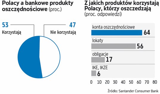 Z oszczędnościowej oferty banków najczęściej korzystali respondenci z najwyższymi dochodami – od 7 tys. zł netto wzwyż (65 proc.), po studiach (63 proc.), a także mieszkający w dużych miastach powyżej 250 tys. osób (60 proc.). Z kolei wśród 47 proc. ankietowanych, którzy nie korzystali w przeszłości z produktów oszczędnościowych, znalazło się najwięcej Polaków z wykształceniem podstawowym (61 proc.) oraz o zarobkach między 2001 a 2999 zł netto (60 proc) – wynika z badania Santander Consumer Banku „Polaków Portfel Własny: oszczędny jak Polak”. Osoby, które korzystały z produktów oszczędnościowych, najczęściej stawiały na konta oszczędnościowe (64 proc.) oraz lokaty (56 proc.). Na kolejnym miejscu znalazły się obligacje skarbowe (17 proc.). Najmniejszym zainteresowaniem cieszyły się rachunki IKE i IKZE (6 proc.). – Już niemal dwie trzecie respondentów, którzy korzystali w przeszłości z produktów oszczędnościowych, miało konto oszczędnościowe, a ponad połowa ankietowanych z tej grupy lokatę. Przewidujemy, że świadomość Polaków w tym zakresie będzie systematycznie rosła, a wykorzystywane produkty zdywersyfikują się – komentuje Magdalena Drążkowska, menedżerka ds. depozytów detalicznych z Santander Consumer Banku.