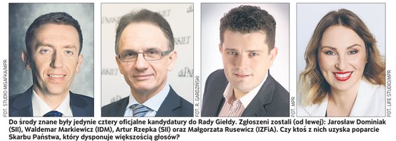 Obecnie kończy się jednak kadencja Rady Giełdy i wyborów trzeba dokonać ponownie. W środę nie były jeszcze oficjalnie znane kandydatury Skarbu Państwa, który ma większość głosów na walnym zgromadzeniu. Niewykluczone, że pozostali akcjonariusze poznają je dopiero na samym WZ.