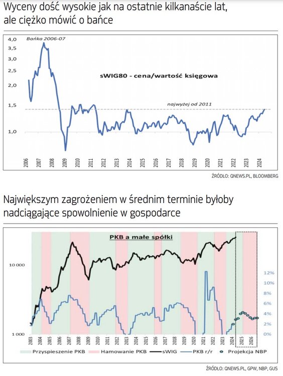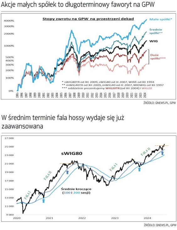 Z jednej strony nowy rekord sWIG80 zdaje się być prostym technicznym potwierdzeniem trendu wzrostowego, zgodnie z klasyczną zasadą „trend is your friend”. Z drugiej strony jasne staje się też jednak, że hossa trwająca od jesieni 2022 roku po 21 miesiącach kalendarzowych jest na zaawansowanym etapie. Można by też dopatrzyć się pewnych podobieństw technicznych względem finału poprzedniej hossy, zakończonej u schyłku 2021 roku. Wtedy analogiczne odbicie w górę od 100-sesyjnej średniej ruchomej w ramach drugiej fali hossy było już ostatnim akcentem całego trendu zwyżkowego.
