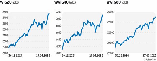 Na tle Europy szczególnie dobrze wypadają rynki naszego regionu, które jeszcze do niedawna były omijane przez inwestorów zagranicznych. Wraz z dojściem do władzy Trumpa sytuacja zmieniła się jednak na ich korzyść. Inwestorzy duże nadzieje pokładają w negocjacjach pokojowych zmierzających do zakończenia wojny w Ukrainie. Ich efekt jest trudny do przewidzenia, ale rynek zdaje się zakładać pozytywny scenariusz, co sprzyja zmniejszeniu ryzyka geopolitycznego w naszym regionie i zwiększeniu zaufania m.in. do polskich aktywów. – Głównym impulsem poprawy nastrojów na GPW jest potencjalne zmniejszenie ryzyka geopolitycznego. W szczególności jakościową zmianą dla oceny perspektyw WIG mogą być informacje o zawarciu porozumienia pomiędzy USA i Rosją. Przy założeniu, że warunki zakończenia konfliktu zbrojnego w Ukrainie nie będą, z punktu widzenia przyszłego bezpieczeństwa Polski, fatalną wiadomością, spodziewamy się utrwalenia poprawy nastawienia do regionu CEE – uważa Bobrowski.