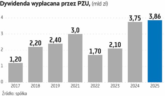 Polityka dywidendowa PZU na lata 2025-27 zakłada wypłatę nie mniej niż 50 proc. zysku w ramach rocznej dywidendy. W 2024 r. (czyli z zysku za 2023 r.) PZU przeznaczyło na dywidendę łącznie 3,75 mld zł, co dało 4,34 zł na akcję. W 2023 r. dywidenda na walor wyniosła 2,4 zł, w 2022 r. 1,94 zł, a w 2021 r. 3,5 zł. Natomiast w pandemicznym 2020 r. dywidendy nie było. Tegoroczne wyniki finansowe PZU zapowiadają się dobrze. Grupa ma za sobą udane I półrocze. W samym drugim kwartale zysk netto wzrósł do 1,47 mld zł z niespełna 1,2 mld zł rok wcześniej. Był o kilka procent wyższy od średniej z prognoz analityków. Z kolei skorygowany wskaźnik zwrotu na kapitale w całym półroczu wyniósł 21,2 proc., rosnąc rok do roku o prawie 4 pkt proc.