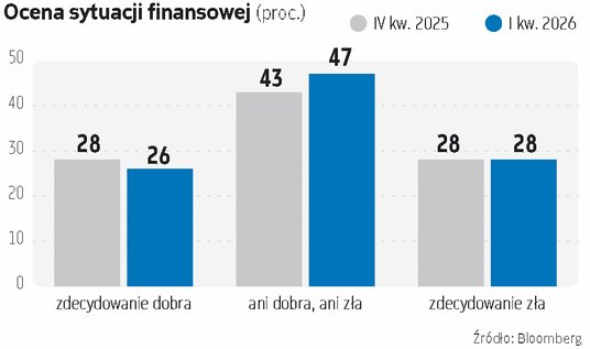 Na koniec 2025 r. 43 proc. Polaków oceniło swoją sytuację materialną jako przeciętną, 29 proc. – pozytywnie, a 28 proc. – negatywnie. Znacznie lepiej swoje finanse postrzegają mężczyźni, przedstawiciele pokolenia Z (18–24 lata) oraz osoby pracujące. Na pytanie „Czy w ciągu ostatnich 3 miesięcy twoja sytuacja finansowa poprawiła się?”, 22 proc. osób odpowiedziało twierdząco. 42 proc. Polaków nie odczuwa znaczących zmian, a 36 proc. badanych oceniło obecną sytuację jako „ani dobrą, ani złą”.