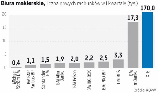 Wciąż rośnie liczba rachunków maklerskich w Polsce, Stawce wciąż lideruje firma XTB.