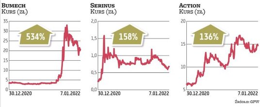 Koniunktura na warszawskiej giełdzie w 2021 r. sprzyjała zarabianiu, co przełożyło się na imponujące stopy zwrotu z akcji. Sprawdzamy, czy dobra passa ubiegłorocznych liderów zwyżek ma szanse na kontynuację w bieżącym roku.
