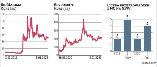 W tej grupie są m.in. BioMaxima oraz Spyrosoft. To spółki, których prospekty właśnie zatwierdziła Komisja Nadzoru Finansowego. BioMaxima działa na rynku diagnostyki laboratoryjnej. Jest notowana na NewConnect od 2010 r. Przeprowadzce nie będzie towarzyszyła emisja akcji.