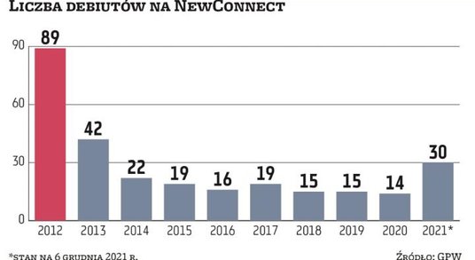 Trudno z tych danych wyciągać jednoznaczne wnioski. Rysuje się hipoteza, że zarabianie na debiutantach na NewConnect jest oczywiście możliwe (akcje kilku firm przyniosły od debiutu w 2021 r. trzycyfrowe stopy zwrotu), ale w ostatnim czasie coraz trudniejsze.