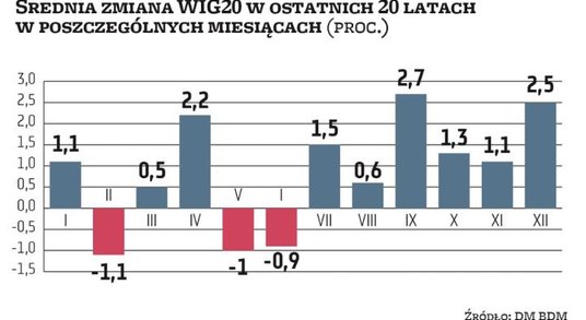 Początek roku to z kolei czas przebudowy portfeli i nowych inwestycji. Mamy też efekt końca roku podatkowego (sprzedaż spółek na koniec starego i nabycie na początku nowego roku). Nie bez znaczenia są również informacje napływające ze spółek pod koniec roku – często publikują nowe, wyższe prognozy finansowe na kolejny rok. Analitycy uwzględniają je w swoich modelach zdyskontowanych przepływów pieniężnych, szacując ceny docelowe, co ma pozytywne przełożenie na notowania rynkowe poszczególnych firm.