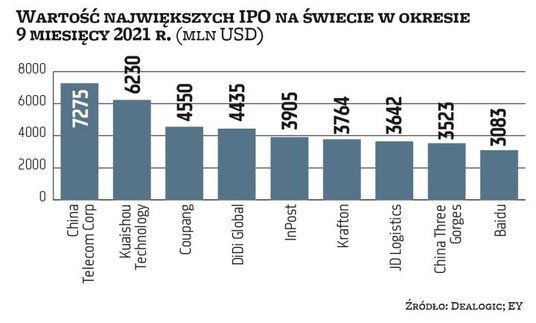 Wśród dziesięciu największych tegorocznych światowych debiutów znalazł się polski InPost (debiutował w Amsterdamie). Pozostałe dziewięć firm pochodzi z Azji.