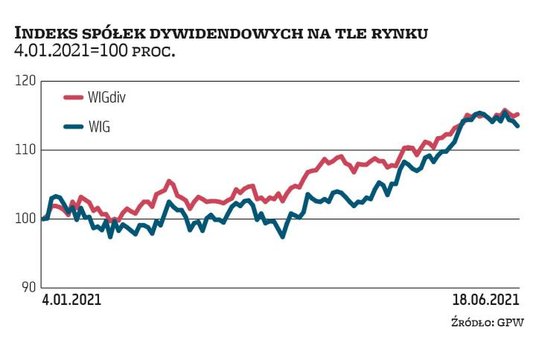 Warto jednak pamiętać, że akcje należy kupić z odpowiednim wyprzedzeniem, uwzględniając okres rozliczeniowy. I tak na przykład w KGHM oraz w Dom Development dzień dywidendy przypada na poniedziałek (21 czerwca), ale de facto ostatnim dniem na zakup papierów z prawem do dywidendy był 17 czerwca. W których zatem spółkach inwestorzy mogą jeszcze załapać się na wypłatę? Między innymi w Forte (dzień dywidendy to 23 czerwca, akcje trzeba kupić najpóźniej 21 czerwca), które wypłaci w tym roku 4 zł na akcję, co przy piątkowym kursie oznacza wysoką, niemal 7-proc. stopę dywidendy. Solidne 4 proc. w tym roku akcjonariuszom zaoferują z kolei Kruk (11 zł na akcję) oraz Mostostal Płock (0,5 zł). Ostatnim dniem, w którym można kupić akcje Kruka z prawem do dywidendy jest najbliższy wtorek, a Mostostalu – czwartek. Jeszcze wyższe stopy dywidendy oferują takie spółki jak Torpol czy Ciech. W Torpolu walne zgromadzenie zdecydowało, by z zysku za 2020 r. na dywidendę trafiło ponad 35 mln zł, co daje 1,53 zł na akcję i implikuje ponad 9-proc. stopę. Dniem dywidendy jest 30 czerwca, czyli najpóźniej dwa dni wcześniej trzeba nabyć akcje, aby uczestniczyć w wypłacie. Analogiczne terminy ustalenia prawa (30 czerwca, 28 czerwca) mamy w Ciechu, który 8 lipca wypłaci 3 zł na akcje, co daje 6,3-proc. stopę.