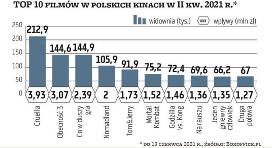 1,28 mln biletów sprzedały kina w Polsce w trwającym nadal drugim kwartale 2021 r. – wynika z danych Boxoffice.pl, do których uzyskaliśmy dostęp. To na razie raptem jedna dziesiąta widowni z analogicznego kwartału 2019 roku, czyli ostatniego roku przed pandemią. Branża zastrzega jednak, że to dane niepełne, nieobejmujące przedpremierowych pokazów czy filmów UIP i osiągnięte praktycznie w dwa tygodnie, i w związku z tym mówi o sukcesie. To nie oznacza, że poradziła sobie ze wszystkimi problemami, które przyniosła pandemia Covid-19.