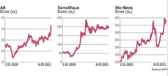 W marcowym raporcie DM BOŚ wśród spółek, które mogą w tym miesiącu radzić sobie lepiej od rynku, znajdziemy m.in. dystrybutorów sprzętu IT: Asbis i grupę AB. Publikowane przez nich wyniki finansowe potwierdzają, że okres pandemii wyraźnie im służy. Perspektywy na ten rok również są bardzo dobre, a wyceny obu firm nie są jeszcze wygórowane. Wprawdzie Asbis ma za sobą falę imponujących wzrostów, ale jego wskaźnik ceny do zysku – podobnie jak dla AB – nadal jest jednocyfrowy.