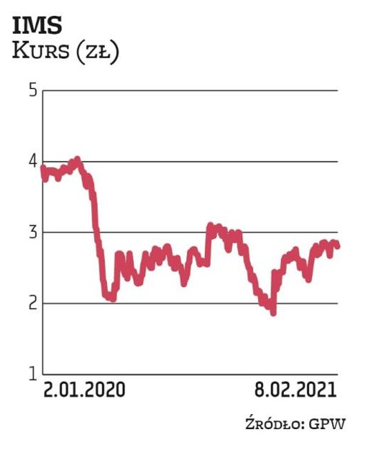 W raporcie z 26 listopada 2020 r. analitycy Erste Securities ustalili cenę docelową akcji IMS na 3,73 zł. W poniedziałek przed południem walory osiągnęły poziom 2,8 zł. GSU