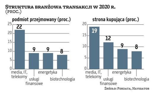 Największą transakcją w 2020 r. było przejęcie giełdowego Playa przez Iliad za ok. 9,6 mld zł. Widać generalnie, że polskie spółki cieszą się dużym zainteresowaniem inwestorów zagranicznych, a pandemia tego nie zmieniła.
