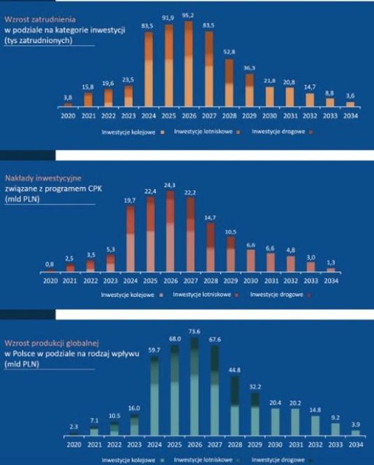 Podobnego zdania jest Mikołaj Wild, prezes spółki CPK.– Ze względu na skalę tej inwestycji będzie ona bodźcem pobudzającym wzrost gospodarczy. Budowa CPK wraz z inwestycjami kolejowymi i towarzyszącymi może zapewnić tysiące nowych miejsc pracy. Inwestycje w prace budowlane i rozwój technologii wywołają efekt mnożnikowy i pobudzą powiązane gałęzie gospodarki – podkreśla Wild.