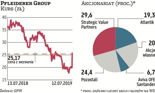Kluczowa dla powodzenia wezwania będzie decyzja funduszy, do których należy większość pozostałych akcji. Na koniec 2018 r. OFE posiadały łącznie prawie 23 proc. papierów Pfleiderera. Instytucje mające największy udział w akcjonariacie nie chciały komentować sprawy, ale analitycy nie mają wątpliwości, że będą chciały ugrać jak najwięcej.