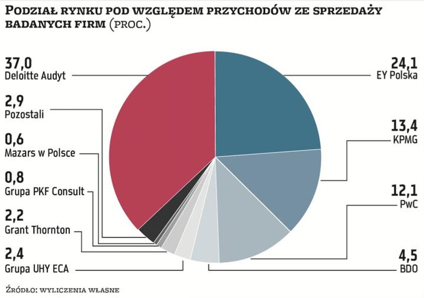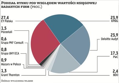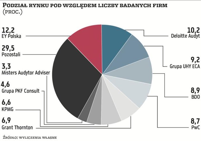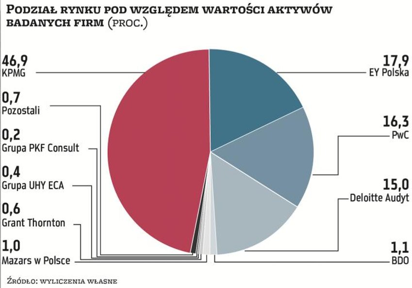 Stosunkowo niewielka liczba punktów w rankingu dzieli tę firmę od dwóch kolejnych, czyli od PwC i BDO. Dobrze w tegorocznym zestawieniu wypadły też takie podmioty jak UHY ECA, Grant Thornton, Grupa PKF Consult, Mazars w Polsce oraz KPFK dr Piotr Rojek i B-think Audit, które zamykają pierwszą dziesiątkę (to miejsce jest podwójne). O ile w głównym rankingu „Rzeczpospolitej", obejmującym nie tylko spółki giełdowe, przewaga firm z tzw. wielkiej czwórki (czyli EY, Deloitte, KPMG, PwC) jest bardzo duża, o tyle w naszym zestawieniu tak dużych różnic w punktacji nie widać.