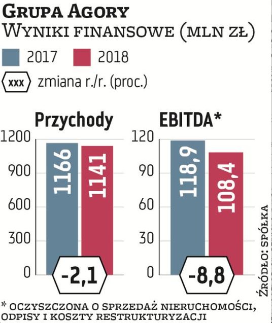 Zdaniem Dominika Niszcza, analityka Raiffeisen Centrobanku, zastanawiając się, co zrobić z akcjami Agory, warto zwrócić uwagę na dwa segmenty reklamowego rynku: reklamy zewnętrznej i radiowej, co do których spółka zakłada dalszy wzrost. Agora prognozuje, że w 2019 r. oba segmenty wzrosną po 2–4 proc., czyli tyle samo co rynek telewizyjny. Najszybciej powiększać się mają wydatki na internet (o ponad 5 proc.).