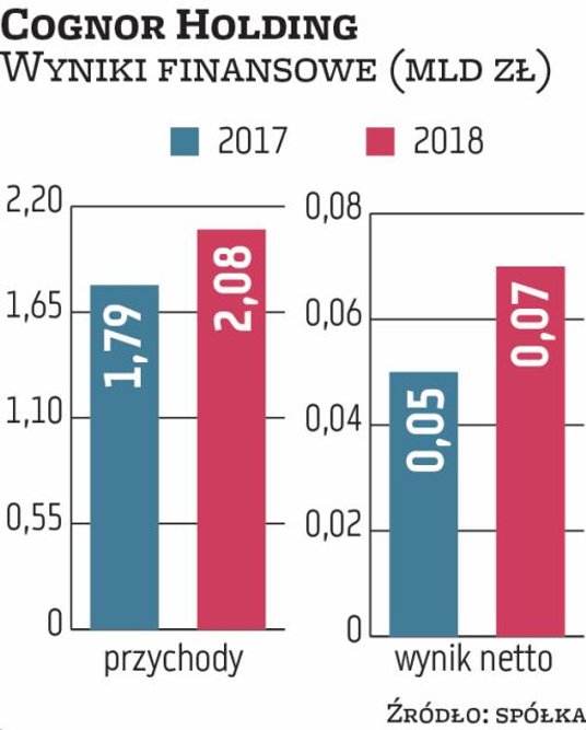 Dzięki poprawie warunków rynkowych, a zwłaszcza lepszemu popytowi i wyższym cenom wyrobów stalowych, grupa poprawiła w minionym roku przychody o 16 proc., do 2,08 mld zł, w porównaniu z 2017 r. W minionym roku Cognor wyprodukował niemal o 3 proc. więcej stali i sprzedał o 1 proc. więcej ton łącznie: złomów stali, kęsów i produktów finalnych. W tym samym czasie grupa odnotowała poprawę zysku netto – o 44 proc., do 72 mln zł.