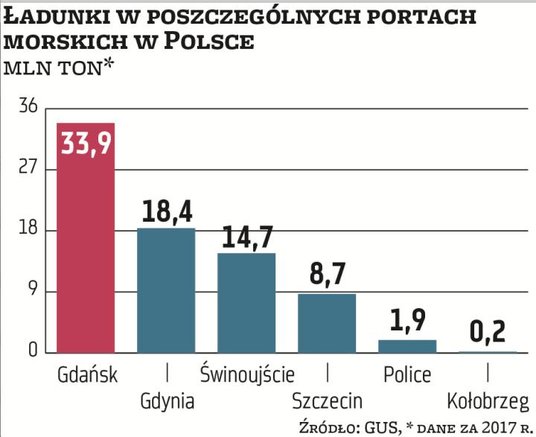 Niedawno minister gospodarki morskiej i żeglugi śródlądowej Marek Gróbarczyk poinformował, że przeładunki w polskich portach morskich przekroczyły w ubiegłym roku barierę 100 mln ton. Był to historycznie najlepszy wynik zanotowany w czterech największych portach podległych resortowi (Gdańsk, Gdynia, Świnoujście i Szczecin). Tym samym według Gróbarczyka przeładunki w stosunku do 2017 r. wzrosły o prawie 16 proc.