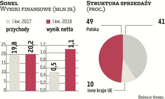 – Oczekujemy, że w 2018 r. wszystkie spółki z grupy osiągną lepsze wyniki w porównaniu z 2017 r. Wdrożyliśmy właśnie ściślejszy nadzór nad spółkami w celu wyeliminowania zbędnych kosztów, co przynosi już wymierne efekty – przekonuje Krzysztof Wieczorkowski, prezes Sonela. Zapowiada, że Sonel India i Foxytech powinny wyjść na plus. Jedynie amerykańska spółka może jeszcze ten rok zamknąć stratą, ale mniejszą niż w 2017 r.