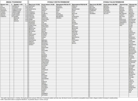 Krótkoterminowa formacja złotego krzyża (średnia krocząca z 10 sesji przebiła od dołu 20-sesyjną) pojawiła się na wykresach 27 spółek, w tym m. in. Comarchu, Mabionu i PGS Software. Analogiczny krzyż śmierci pojawił się na wykresach 61 spółek, w tym m. in. Lotosu, Pekao i PZU.