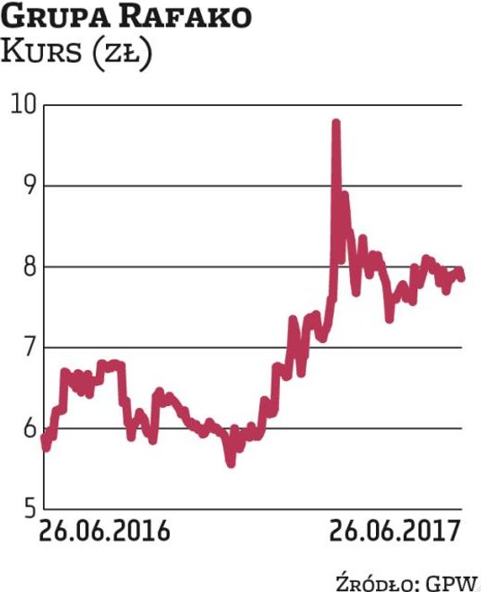 W ostatnich tygodniach kurs Rafako znajduje się w trendzie bocznym, cena oscyluje wokół 8 zł. Inwestorzy neutralnie odebrali informację o II etapie restrukturyzacji. Zdaniem zarządu zmiany są konieczne i pozwolą firmie na poprawę wyników.