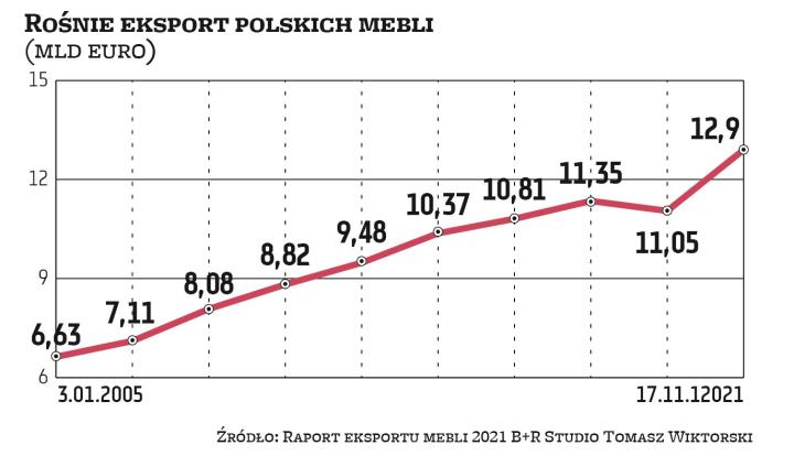 Branża szacuje, że w zeszłym roku produkcja mebli wzrosła o ok. 20 proc., a przychody sięgnęły 13 mld euro.