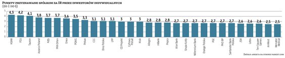 Bardzo ważne jest także równe traktowanie wszystkich grup inwestorów. Wiadomo, że każda grupa ma nieco inne priorytety, ale równe traktowanie i otwartość w komunikowaniu nie tylko dobrych, lecz przede wszystkim tych trudniejszych informacji w rezultacie przekłada się na wysoki poziom zaufania.