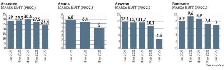 Niewiele lepiej przedstawia się sytuacja Apatora. Wyniki producenta urządzeń pomiarowych są pod silną presją rosnących kosztów produkcji. Na niekorzyść spółki działają także rosnące stopy procentowe z uwagi na wyższe koszty obsługi zadłużenia i wysokie notowania dolara, ponieważ znaczna część zakupów dokonywana jest w amerykańskiej walucie. – Spółka wciąż ma kłopoty z utrzymaniem wielkości sprzedaży, dużą konkurencją, rosnącymi kosztami komponentów i ich brakami (co wymaga wyższego zaangażowania kapitału obrotowego), przy ograniczonej możliwości przenoszenia wzrostu kosztów na odbiorców. Dodatkowo rosnące koszty obsługi coraz wyższego zadłużenia niwelują efekty prac nad obroną marż – zwraca uwagę Michał Sztabler, analityk Noble Securities. Tymczasem zarząd Apatora liczy, że najtrudniejszy okres spółka ma już za sobą i II połowa roku przyniesie zauważalną poprawę w wynikach grupy.