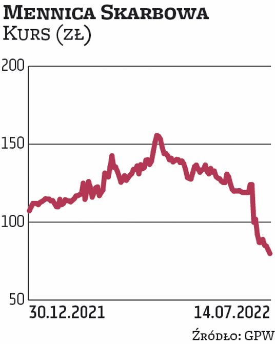 Od momentu podjęcia wspomnianej uchwały dotyczącej wypłaty 1 mln zł dywidendy notowania Mennicy Skarbowej spadają. W czwartek po południu za walor płacono 79,3 zł, o niemal 40 proc. mniej niż jeszcze pod koniec czerwca. Wydaje się jednak, że prognozy dla rynku złota, a zatem i dla spółki, która nim handluje, pozostają umiarkowanie pozytywne.