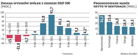 Jak wynika z danych FactSet spółki wchodzące w skład indeksu S&P 500 mają wypracować w II kwartale wzrost zysku o 4,3 proc., co byłoby najsłabszym tempem od ostatniego kwartału 2020 r. W minionych kwartałach firmy pozytywnie jednak zaskakiwały inwestorów i zyski były powyżej prognoz. Biorąc pod uwagę średnią z ostatnich pięciu lat, pozytywne niespodzianki w raportach mogłyby sprawić, że zyski spółek wzrosną o 9–12 proc.
