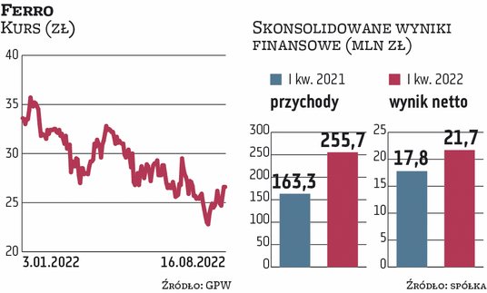 Na funkcjonowanie Ferro, tak jak i innych firm z branży, istotny wpływ mają wysokie koszty wynagrodzeń, surowców, energii i transportu. Zarząd liczy, że w kolejnych miesiącach rynek będzie miał jednak do czynienia z kontynuacją obserwowanej od kilku tygodni stabilizacji cen surowców. – Trzeba jednocześnie pamiętać, że te tendencje odzwierciedlane są w rachunku wyników spółek z kilkumiesięcznym przesunięciem. Z pewnością w dalszym ciągu wysoka będzie presja związana z cenami energii i paliw oraz obciążeniami związanymi z kosztami finansowania – uważa Gątkiewicz. Jego zdaniem nie bez znaczenia są też wysokie kursy dolara i euro, które uderzają w gospodarkę.