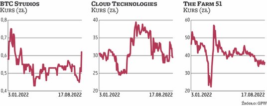 Podczas środowej sesji taniały akcje takich firm jak Mennica Skarbowa, Geotrans, Ice Code Games czy Hub.Tech. Ta ostatnia w II kwartale 2022 r. wypracowała 42,8 mln zł przychodów, czyli o 30 proc. więcej niż w analogicznym okresie poprzedniego roku. Zysk operacyjny spadł do 7,4 mln z 8,6 mln zł, a zysk netto do 5,3 mln z 7,5 mln zł.