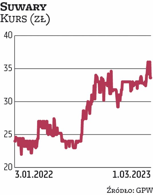 Tymczasem kondycja Suwar uległa ostatnio istotnemu pogorszeniu. W I kwartale roku obrotowego 2022/2023 (trwał od 1 października) grupa w ujęciu rok do roku zanotowała spadek przychodów o 26,4 proc. i poniosła ponad 2,3 mln zł straty netto. Należy też zauważyć, że do 31 marca do godz. 10 trwa wezwanie ogłoszone przez Plast-Box na akcje Suwar. Inwestor chce mieć 100 proc. udziałów. Oferuje po 32,2 zł za papier.