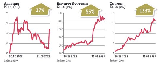 Wiele zwłaszcza mniejszych spółek w pierwszych trzech miesiącach tego roku z powodzeniem odrabiało ubiegłoroczne starty spowodowane bessą. Nie brakowało też takich, których walory kontynuowały pozytywny trend. Czym przekonały do siebie inwestorów?
