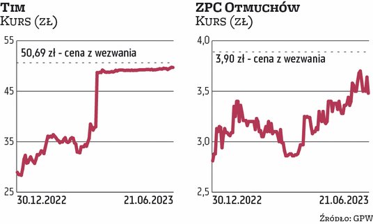 W najbliższym czasie rozstrzygną się losy przejęcia Timu. Od dnia upublicznienia planów wezwania notowania spółki oscylują w pobliżu 49 zł. To wyraźnie poniżej ceny z wezwania ogłoszonego przez niemiecką Grupę Würth, która oferuje 50,69 zł za akcję. Rynek raczej nie wierzy w możliwość podniesienia ceny. Drobni akcjonariusze mają czas na decyzję do 4 lipca.
