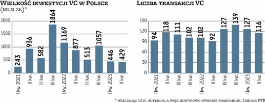 W Polsce trudno jednak o optymizm. Dane Polskiego Funduszu Rozwoju (bazujące na ujawnionych publicznie transakcjach) pokazują, że po siedmiu miesiącach mamy do czynienia z aż 65-proc. spadkiem finansowania VC względem 2022 r. Wszystko wskazuje na to, iż inwestycje wysokiego ryzyka nad Wisłą skurczą się rok do roku siódmy kwartał z rzędu (wedle analizy PFR w II kwartale do start-upów popłynęło 429 mln zł, o połowę mniej niż rok wcześniej).
