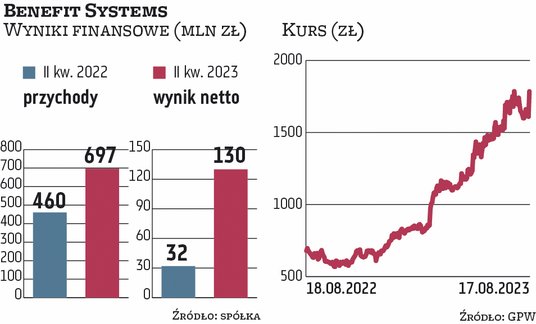 Po pandemicznych trudnościach, z jakimi borykał się sektor usług fitness, nie ma już śladu. Zachowania uczestników nieco się jednak zmieniły – młodsze pokolenia spędzają więcej czasu na siłowniach, a cały polski rynek jeszcze się powiększył. Benefit w tych warunkach idzie jak burza – dwucyfrowe umocnienie notowań operatora kart sportowych w czwartek sprawiło, że zwyżka akcji od początku roku przekroczyła już 140 proc. Jest to niemal najwyższy wynik w mWIG40, który dotąd zyskał 26 proc. Takiej reakcji inwestorów jednak trudno się dziwić – wyniki za II kwartał były zdecydowanie wyższe od mediany oczekiwań analityków. Przykładowo zysk netto sięgnął 129,5 mln zł i był o ponad 41 proc. wyższy od prognoz.