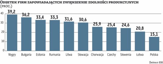 Z badania Europejskiego Banku Inwestycyjnego wynika, że maszyny i sprzęt zdominowały wydatki inwestycyjne zwłaszcza firm produkcyjnych (60 proc.) i budowlanych (59 proc.). Z kolei firmy usługowe zainwestowały relatywnie więcej w technologie cyfrowe (18 proc.), a udział inwestycji w aktywa niematerialne był najwyższy w Łotwie, na Słowacji, w Słowenii i Czechach.