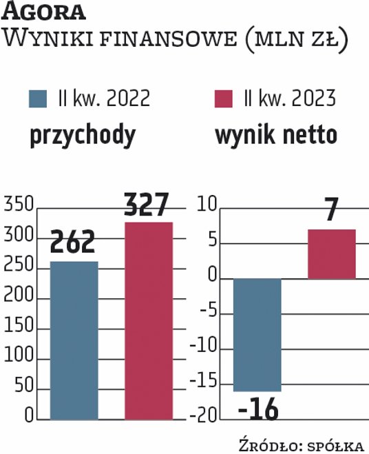 Pozytywną niespodziankę sprawiła inwestorom Agora, wypracowując drugi kwartał z rzędu zysk netto. Równocześnie po raz pierwszy od kilku kwartałów pojawił się zysk operacyjny. Rezultaty poprawiły się w dużym stopniu za sprawą konsolidacji wyników Grupy Eurozet, nadawcy Radia Zet. Zdaniem Macieja Bobrowskiego, analityka DM BDM, spółka może mieć powody do optymizmu w perspektywie kolejnych kwartałów. – Po stronie przychodowej widzimy szereg wzrostowych impulsów. Potwierdzeniem umiarkowanego optymizmu (na obecnym wciąż wymagającym rynku reklamy) może być fakt, że Agora podniosła prognozy dla całego 2023 r. Dostrzegamy, że Agora zaczyna korzystać z nowej oferty reklamowej po przejęciu kontroli nad Eurozetem i liczymy na dobre informacje z tego obszaru w kolejnych okresach. Z dobrej strony pokazał się Helios, który odczuwalnie poprawił monetyzację widza w ujęciu r./r. W II kwartale pomimo punktowo niższej frekwencji r./r. udało się zwiększyć wpływy z działalności kinowej – wskazuje. Jednocześnie oczekuje, że kolejne kwartały powinny potwierdzić, że spółka jest na ścieżce odbudowy wyników po długim okresie perturbacji.