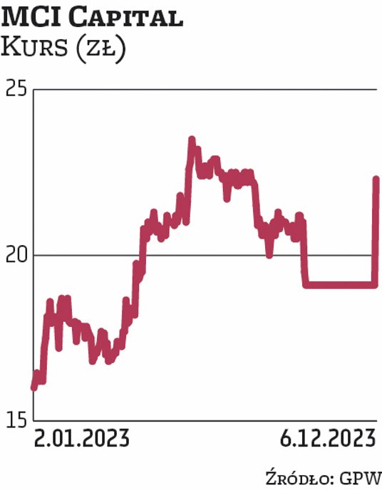 MCI było w środę liderem wzrostów na giełdzie. Po południu akcje zyskiwały kilkanaście procent w reakcji na odwieszenie notowań. Były zawieszone od końca września na skutek bałaganu legislacyjnego związanego z przepisami dotyczącymi ASI. Kroki w kierunku odwieszenia notowań podjął też JR Holding, natomiast obrót akcjami pozostałych siedmiu giełdowych ASI nadal jest zawieszony.