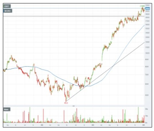 Od strony technicznej Benefit Systems w poniedziałek niemal wyrównał dopiero co pobity rekord wyceny. Akcje chwilami kosztowały 2130 zł wobec maksymalnie 2140 zł w połowie grudnia.