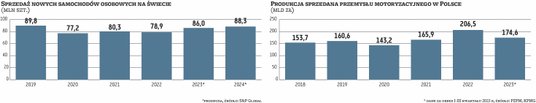 Z szacunków analityków S&P Global Mobility wynika, że w 2023 roku na całym świecie nabywców znalazło ok. 86 mln aut osobowych, o ponad 7 mln sztuk więcej niż w poprzednim roku. Ich prognozy na 2024 rok zakładają kontynuację odbicia, choć tempo wzrostu nie będzie już tak efektowne jak w poprzednim roku. Oczekują, że globalna sprzedaż nowych samochodów zwiększy się o 2,8 proc., do 88,3 mln sztuk. Będzie to możliwe dzięki wciąż wysokiemu popytowi na kluczowych rynkach.