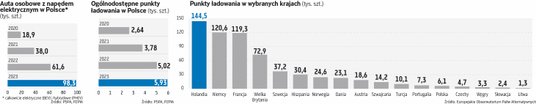 Na koniec stycznia liczba punktów ładowania pojazdów elektrycznych sięgała w Polsce 6,1 tys. Najwięcej, bo co dziesiąty, znajdowało się w Warszawie. Znacznie mniej było ich kolejno w: Gdańsku, Szczecinie, Poznaniu, Krakowie i Katowicach. Krajowa infrastruktura, w porównaniu z innymi państwami europejskimi, jest jednak dość skromna. Jesteśmy daleko nie tylko za liderami elektromobilności, takimi jak Holandia, Niemcy i Francja, gdzie liczba punktów ładowania wynosi po 119–144 tys., ale nawet za Danią, Austrią, czy Portugalią, krajami z liczbą mieszkańców znacznie mniejszą niż w Polsce. Warto też zauważyć, że Europa jako całość nie jest liderem na globalnym rynku ładowarek. Pierwsze miejsce z ogromną przewagą zajmują Chiny. Według Międzynarodowej Agencji Energetycznej (IEA) na koniec 2022 r. było na świecie około 2,7 mln publicznych punktów ładowania aut, z czego dużo ponad połowę miało Państwo Środka. Druga była Europa, a trzecie USA.