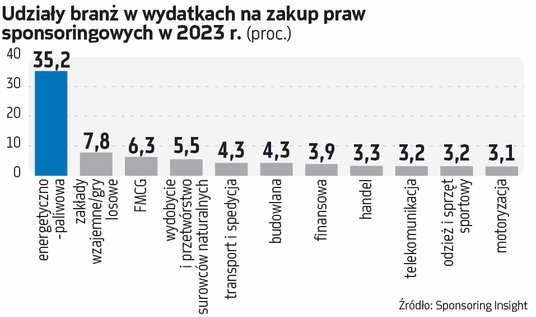 Spośród firm z branży energetyczno-paliwowej (ma ona ponad 35-proc. udział w całości polskiego rynku) stosunkowo duże wsparcie sportu zapewniają też PGE i Enea. Największy koncern energetyczny nad Wisłą, czyli PGE, informuje, że w ubiegłym roku jego wydatki na sponsoring zostały zwiększone. „Wzrost wydatków związany był zarówno z rozszerzaniem współpracy z dotychczasowymi partnerami, jak również był wynikiem zawierania nowych umów. W 2023 r. w porównaniu do poprzednich lat znacząco zwiększono wydatki na mecenat kultury” – podaje biuro prasowe PGE. Żadnych konkretnych kwot nie ujawnia. Informuje za to, że największe nakłady poczyniono na realizację projektów związanych ze sponsoringiem tytularnym Stadionu Narodowego w Warszawie (PGE Narodowy) oraz najlepszej żużlowej ligi świata (PGE Ekstraliga). Na razie nie wiadomo, czy tegoroczne wydatki na sport zmienią się, gdyż w spółce trwają jeszcze prace nad kierunkiem działań sponsoringowych. „Budżet na sponsoring wynika z przyjętej polityki sponsoringowej w grupie PGE. Jego wysokość zależy od realizacji określonych celów, jak promocja marki PGE i budowanie jej wartości wizerunkowej” – zapewnia PGE.