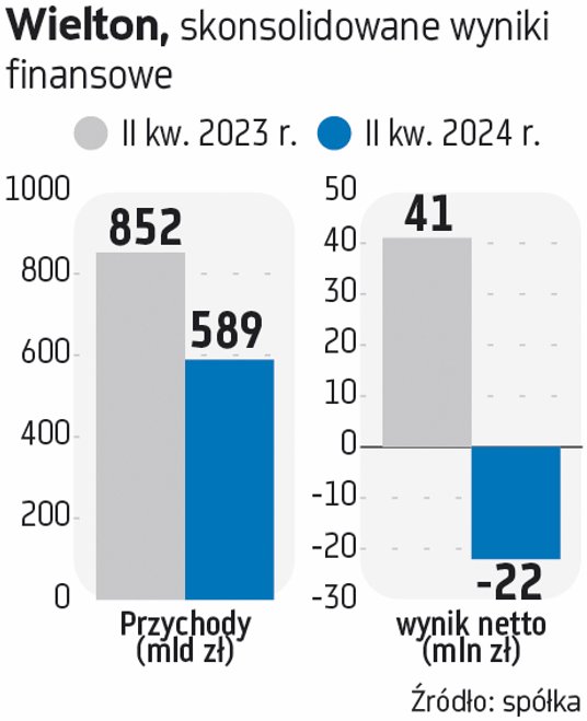 W celu poprawy sytuacji finansowej i w obliczu braku perspektyw na rychłą poprawę sytuacji rynkowej zarząd Wieltonu zdecydował o redukcji zatrudnienia oraz ograniczeniu wydatków inwestycyjnych na bieżący rok z planowanych 130 mln zł do 73,7 mln zł. Jest to konieczne, bo jednym z palących wyzwań jest rosnące zadłużenie grupy. Wskaźnik długu netto do EBITDA na koniec I półrocza br. podniósł się do poziomu 4,49 z 2,21 rok wcześniej. Z kolei marża EBITDA obniżyła się rok do roku w II kwartale br. o 4,6 pkt proc., do 1,8 proc.